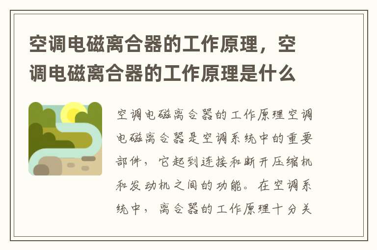 希望通過這篇文章,你對空調(diào)電磁離合器的工作原理有了更深入的了解。如果你有任何疑問或者想要了解更多信息,可以隨時留言給我。謝謝閱讀!